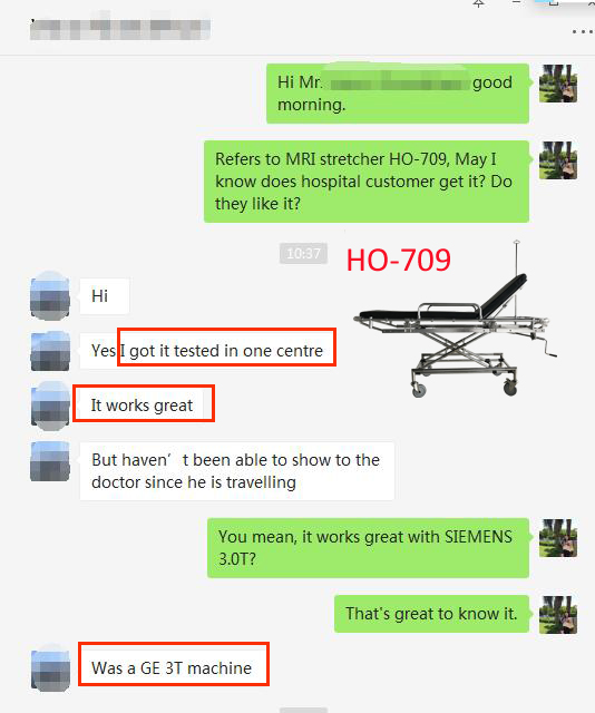 On21th Dec, 2019, our distributor updated the feedback of test result of MRI compatible stretcher HO-709. They tested HO-709 height adjustable stretcher with 3.0T GE in a center, and informed us that the stretcher works great with 3.0T G.E